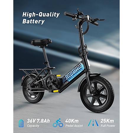 - Battery & Range: 36V 7.8Ah (280Wh) Lithium Battery, 15-19 miles (Pedal Assist).