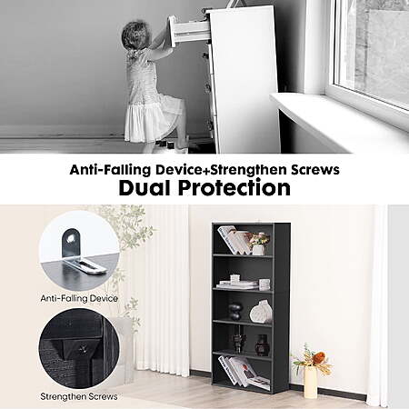 - Top Anti-tip Device]- Keep your belongings safe with Gianna's top priority of safety – an anti-tip structure at the top of the bookcase. Connect the bookcase to your wall for enhanced stability and peace of mind.