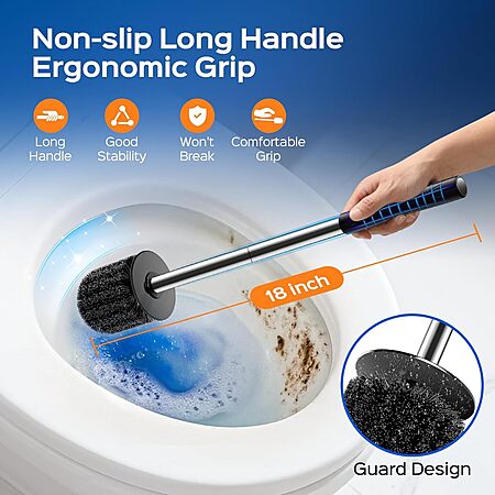 - Ergonomic Long Handle: Reduces bending over for a comfortable clean. Secure, durable grip prevents brush head detachment.