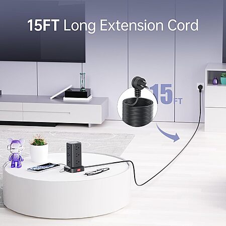 SMALLRT Compact 12 AC 4 USB Surge Protector Tower w/ 15' Cord (Black) $17.99 & More + Free Shipping