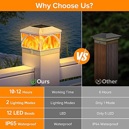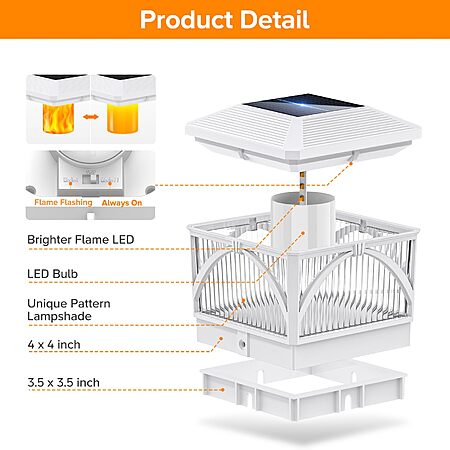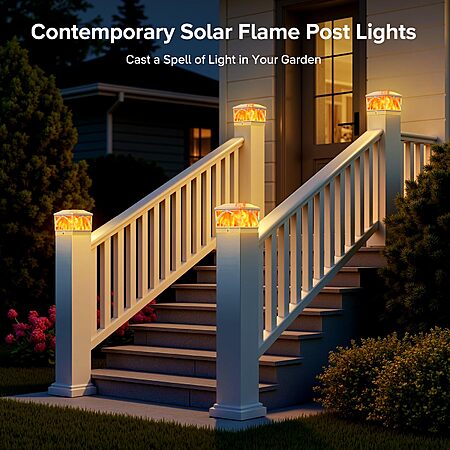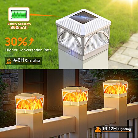LETMY 8 Pack Solar Flame Post Cap Lights Outdoor- Flickering Flame & Warm Light 4x4 Fence Post Solar Lights Outdoor Waterproof for Fence, Garden (White) $29.99
