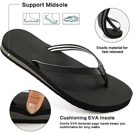 Ecetana Women's Foam Flip Flops w/ Arch Support (Black or Brown) $9 + Free Shipping w/ Walmart+ or $35+ Orders