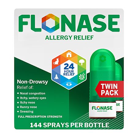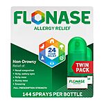 Flonase Allergy Relief Nasal Spray, 24 Hour Non Drowsy Allergy Medicine, Metered Nasal Spray - 144 Sprays (Pack of 2) - $26 S&S CLIP Q Free Ship