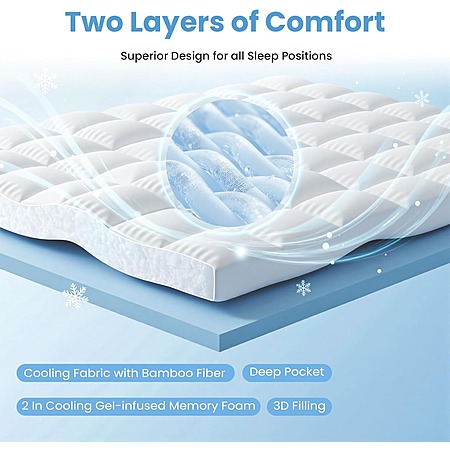 Dumos via Amazon [amazon.com] has a Dual Layer 3 Inch Mattress Topper (Queen) with 2 Inch Gel Memory Foam and 1 Inch Pillow Top Mattress pad for $39.98.