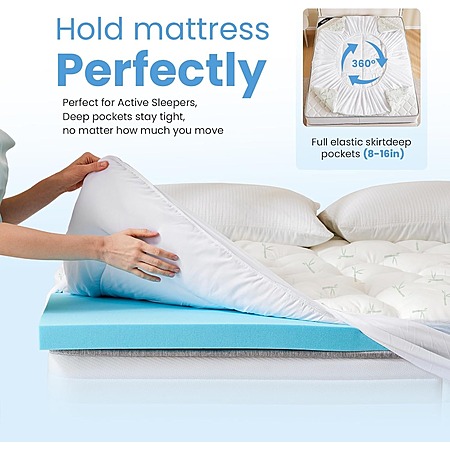 - The elastic deep-pocket skirt fits mattresses up to 21" thick, keeping the topper firmly in place without shifting. Compatible with most mattress types, including memory foam, hybrid, innerspring, and more.