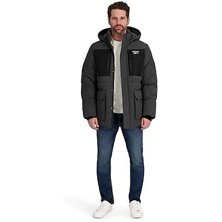 Model: Reebok Mens Puffer Parka Heavyweight Jacket, Charcoal, L