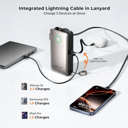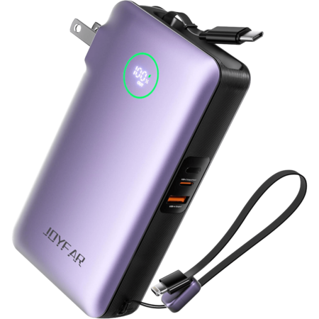 JOYFAR 25,000mAh GaN 65W Power Bank w/ Wall Plug & Retractable USB-C Cable