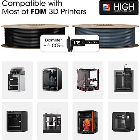 Amazon.com has eSUN PLA Basic Filament 1.75mm, 3D Printer Filament High Speed PLA for Fast Printing, 1KG per Spool, 2 Spools High Speed 3D Printing Filament, Grey + Black $20.99 + Free Shipping With Prime or over $35.