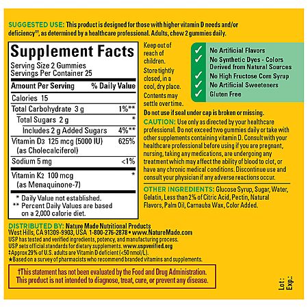 50-Count Nature Made Vitamin D3 K2 Gummies (5000 IU) $7.79 w/ S&S + Free Shipping w/ Prime or on $35+
