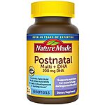 [SnS, AC] $15.73 | 2 × 60-Count Nature Made Postnatal Multivitamin + DHA 200 mg Softgels ($7.86 each) at Amazon