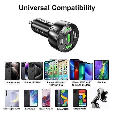 5-Port LMAV 75W 2x USB-C & 3x USB-A Car Charger Adapter (Black) $4.27 + Free Shipping w/ Prime or on $35+