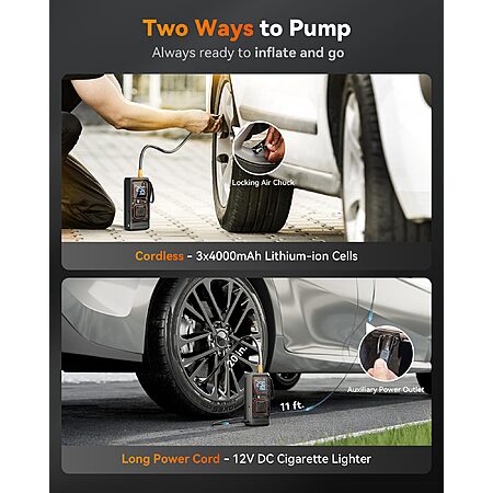150PSI WOLFBOX Cordless & Corded Tire Inflator / Air Compressor $24 + Free S/H