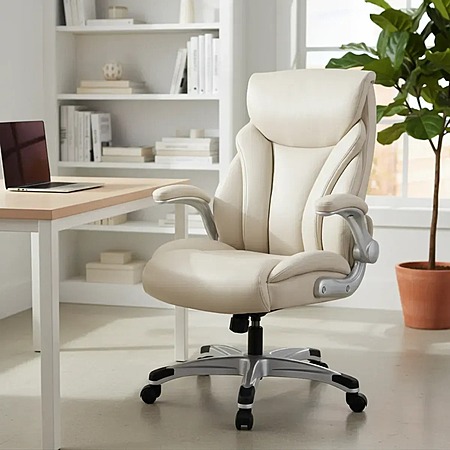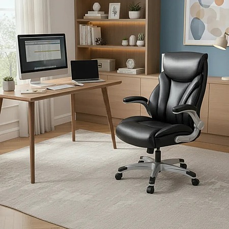 - Flip‑up armrests (90°) provide flexibility—tuck them away when you want to sit closer to your desk or stretch out