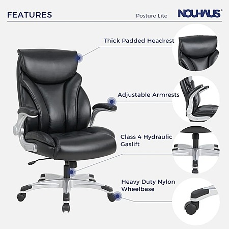 NOUHAUS Posture Lite Ergonomic PU Leather Office Chair (Black) on sale for $222.99 - $79.99 off with code
