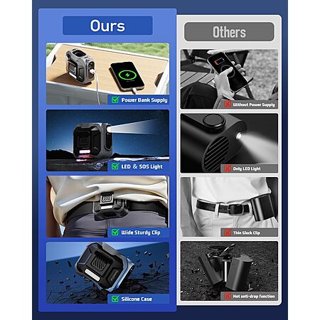 Sweetfull Rechargeable Portable Waist Jobsite Fan (Grey): 10000mAh + Flashlight $14.99 + Free Shipping w/ Prime or on $35+