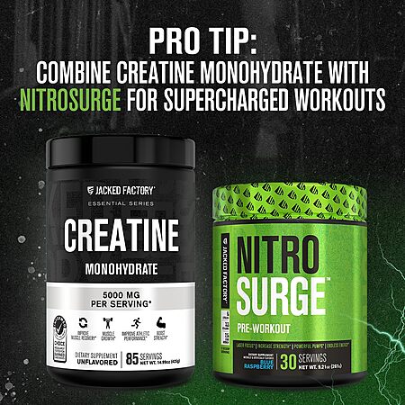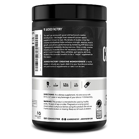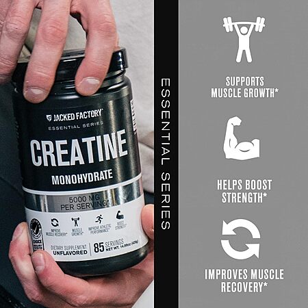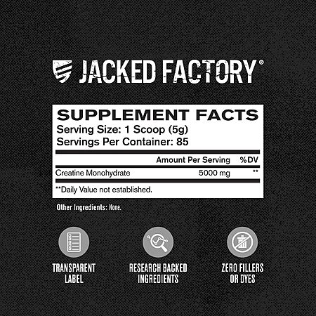 Model: Jacked Factory Creatine Monohydrate Powder 425g - Creatine Supplement for Muscle Growth, Increased Strength, Enhanced Energy Output and Improved Athletic Performance 85 Servings, Unflavored