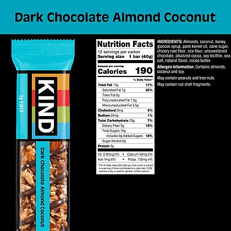 Model: KIND Nut Bars, Dark Chocolate Almond Coconut, 1.4 Ounce, 24 Count, Gluten Free, Low Glycemic Index, 3g Protein