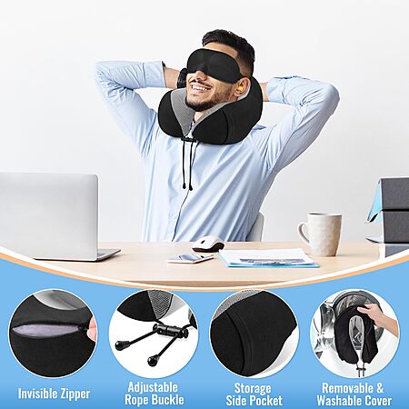 CloudBliss Premium Memory Foam Travel Pillow (Black) for
