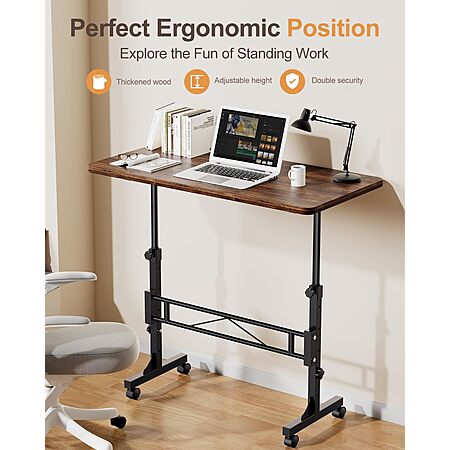 32" Amztabler Manual Adjustable Height Small Standing Desk w/ Wheels (Wood Rustic) $49.99 + Free Shipping