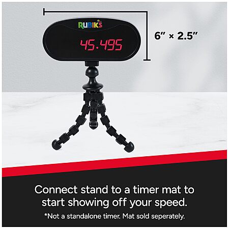 Speedcubing Device: Get competition-ready at home with official Rubik's gear. The Mini Timer Display & Stand is a helpful tool for training for WCA tournaments & trying to beat your personal best. Speed Cube Training: Measuring 6"x2.5," the analog display is easy to read & attach to the flexible & secure tripod legs that bend to adjust the height. Includes case for easy solving on the go. Timer Mat Sold Separately: Connect Mini Display to a timing mat to track time – display does not track time on its own. Mat not included. Pair with Rubik's Timer Mat or most third-party mats to use. What's Your Next Move: Love the thrill of taking on speedy solving challenges? Complete your Rubik's collection with Timer Mat, Timer Stand, classic 3x3 Cube, 3x3 Speed Cube, 2x2 Speed Cube & more. Gifts For Puzzle Lovers: For players & collectors of brain teaser puzzles, fidget toys & puzzles for adults, Rubik's has cool stuff to add to gift baskets as gifts for men, gifts for teens & more. Includes: 1 Display Device, 1 Data Cord, 1 Stand, 1 Case, Instructions Covered by the Spin Master Care Commitment. See below for full details, Manufacturer: Spin Master