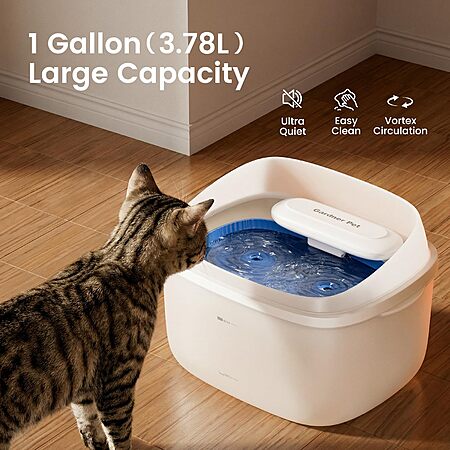 Gardner Pet Cat Fountain 1 Gallon, Vortex Dog Water Fountain, Without Adapter (White) $14.24