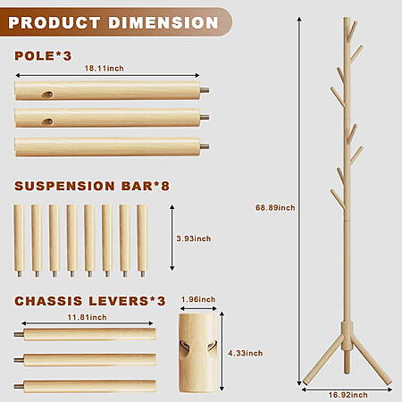 | Product Description: | stusgo Coat Rack Freestanding,Wooden Coat Tree with 8 Hooks and 3 Adjustable Section Height for Bedroom, Hallway, Entrance,Office,Coat Hanger Percheros for Jackets Sweater Hat Bag Wigs Let every piece of clothing have its stage! stusgo coat rack, the perfect fusion of fashion and practicality. 1️⃣ Unique design: simple but not simple lines, add a touch of art to your home space. 2️⃣ stable and durable: made of high quality materials, strong load-bearing capacity, so that your clothes safe and worry-free. 3️⃣ multi-functional use: not only can hang clothes, but also can place hats, bags and other accessories, a multi-purpose thing. 4️⃣ Space saving: three-dimensional structure design, effective use of vertical space, make the room more tidy and orderly. 5️⃣ easy to match: a variety of colors and styles are available, easy to integrate into a variety of home styles. Choose stusgo coat rack, make life more stylish, make home more warm! ▶ KEY FEATURES: [Easy to Assemble] The coat rack features metal screw holes for quick assembly without tools. It can be put together in just 5 minutes, making it user friendly for all ages [High Quality Solid Wood] Crafted from selected high quality solid wood, this coat rack ensures sturdiness and durability, providing a long lasting solution for your storage needs [Sturdiness & Aesthetics] Designed to hold up to 16kg, the coat rack features 8 hooks for hanging light to medium weight jackets. Its natural wood grain adds warmth and complements various home decor styles [Space Saving & Compact] Ideal for small spaces, this coat rack helps keep jackets organized and off furniture. Its compact design makes it perfect for entrances or bedrooms [Stability] The three legged structure ensures balanced weight distribution, preventing tipping even with heavy jackets. The well spaced arms provide practicality and ease of use ▶PRODUCT DETAILS: This freestanding coat rack from stusgo is a versatile and stylish addition to any home. Crafted from high-quality solid wood, it features 8 sphere-shaped hooks and 3 adjustable sections, allowing you to customize the height to suit your needs. The sturdy design can hold up to 16kg (35lbs) of clothing, making it perfect for the bedroom, hallway, or entryway. With its easy assembly and natural wood tones, this coat rack seamlessly blends with a variety of decor styles, providing a practical and attractive storage solution for your jackets, sweaters, hats, and more. stusgo Adjustable Height Coat and Hat Racks, Wood Brown, 20.68" x 5.71" x 3.27" |