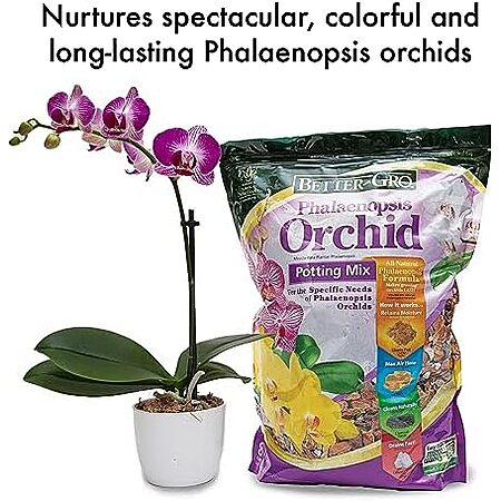 Model: Better-Gro Phalaenopsis Mix - Premium Grade Phalaenopsis Potting Mix for Potting, Repotting, Enhanced Drainage, Air Flow & Root Ventilation, Ideal for Phalaenopsis Orchids - 8 Dry Quarts