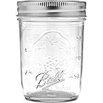12-Pack Ball 8-Ounce Regular Mouth Mason Jars Half Pint w/ Lids & Bands for