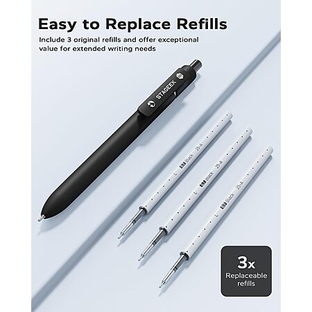 - 6PCS Ink Pens & 3 Refills: You will receive 6 sleek black ink pens with a unique minimalist style that highlights the purity of a single color. Combining traditional ink reliability with gel pens smoothness, they include 3 original refills and offer exceptional value for extended writing needs—perfect for daily use and replacements