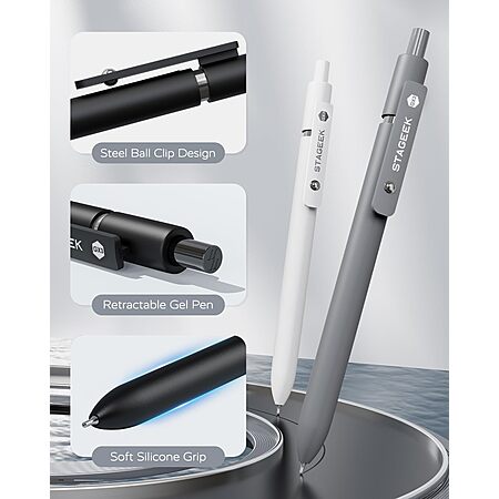 6-Piece STAGEEK Point Smooth Writing Pens w/ 3 Extra Refills (Black Gray White) on sale for $11.99 - $4.55 off when you enter the coupon code