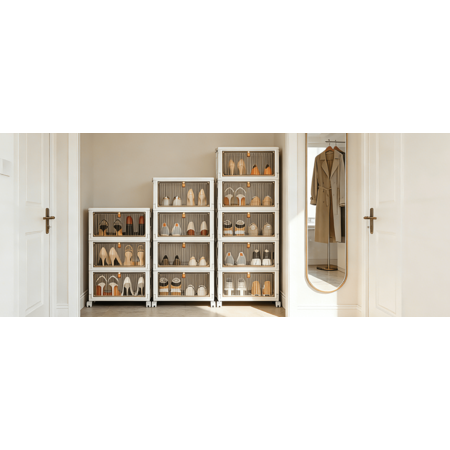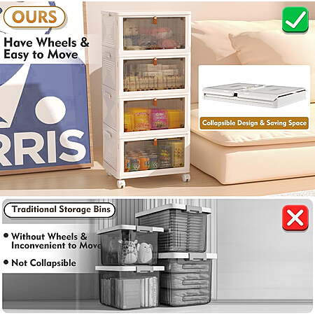| Product Description: | Product details The OKENTEN Plastic 92 Qt Storage Container, 4 Tier Plastic Storage Bins with Lid 23QT, Stackable Storage Containers with Wheels, Folding Storage Boxes, offers a versatile and practical solution for organizing your space. Designed with high-quality plastic, this storage chest features four tiers and a stackable, folding design that allows for easy assembly and compact storage when not in use. Equipped with wheels for mobility and magnetic lids for secure closure, it is ideal for storing toys, crafts, snacks, makeup, and more. Perfect for use in garages, classrooms, closets, bedrooms, bathrooms, offices, or pantries, this durable storage organizer ensures functionality and convenience for any environment. Practical Storage Solution: Ideal for organizing toys, crafts, photos, medicine, snacks, and makeup products. Perfect for use in garages, classrooms, closets, bedrooms, bathrooms, offices, or pantries Install-Free: Stackable design allows for easy folding when not in use. Quick assembly in about 10 seconds without the need for tools or instructions High-Quality Material: Constructed from durable PP plastic, ensuring longevity and reliability. Can be used assembled or detached for individual use Two Opening Options: Features a top lid and a front door for easy access. The front door includes a magnetic closure to keep it securely shut and prevent dust exposure Movable Design: Equipped with 4 wheels for easy mobility. Two of the wheels have buckles to secure the container in place when needed Practical Organization: Ideal for organizing toys, crafts, photos, medicine, snacks, and makeup products. Perfect for use in garages, classrooms, closets, bedrooms, bathrooms, offices, or pantries. Easy Assembly: Stackable design allows for easy folding when not in use. Quick assembly in about 10 seconds without the need for tools or instructions. Durable Material: Constructed from durable PP plastic, ensuring longevity and reliability. Can be used assembled or detached for individual use. Dual Access: Features a top lid and a front door for easy access. The front door includes a magnetic closure to keep it securely shut and prevent dust exposure. Mobile Design: Equipped with 4 wheels for easy mobility. Two of the wheels have buckles to secure the container in place when needed. Product Dimensions: Dimensions are 15.35 * 11 * 32.87 inches (L*W*H). Number of tiers: 4. Color: White+Clear. |
