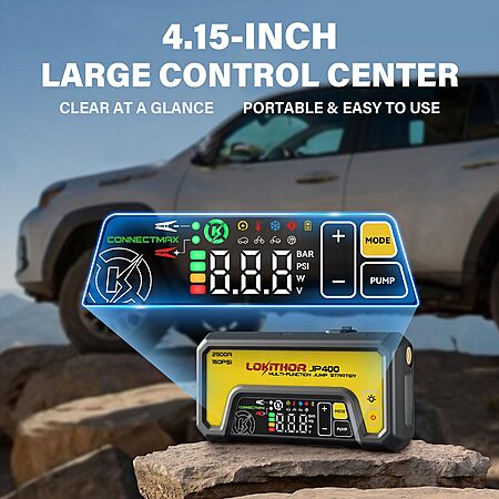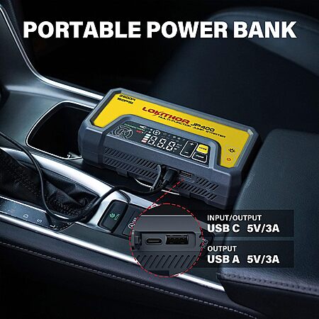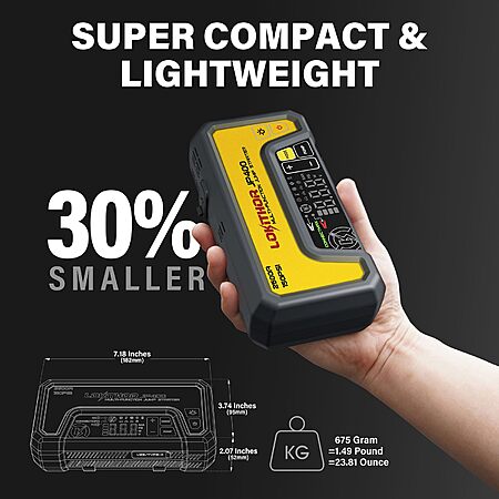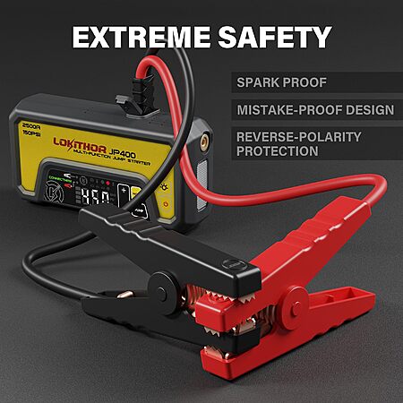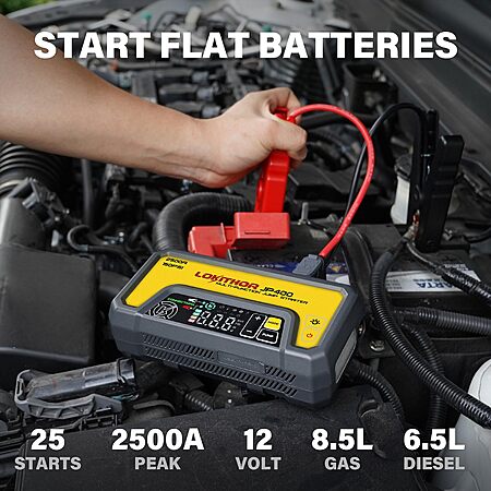 LOKITHOR JP400 2500A 12V Portable Car Battery Booster Pack (8.5L Gas/6.5L Diesel), 150PSI Tire Inflator $44.97