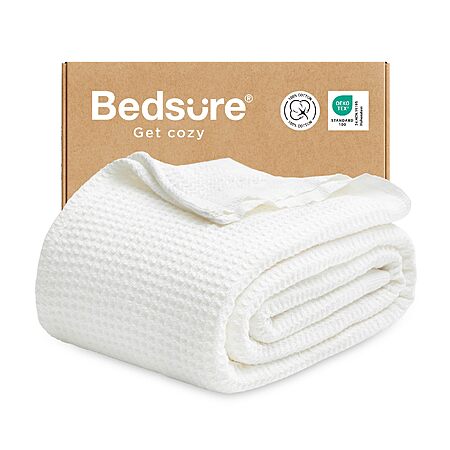 $49.99: Bedsure Gentlesoft 100% Cotton Blanket, Full Size, White, 01 White, Full (80" x 90")