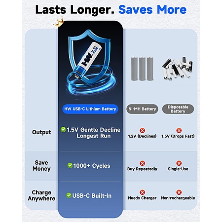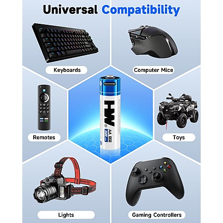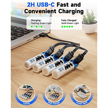 4-Pack HW AA USB-C Rechargeable 1.5V 3600mWh Lithium Batteries w/ 4-in-1 Cable $10.82 + Free Shipping w/ Prime or $35+ Orders