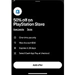 Thanks, was able to save the offer. Make sure you link your Cash App account in your PS Store settings and make it your default payment beforehand, it won't show the discount in your PS Store checkout but you will be charged 50% off in your Cash App account. Also doesn't work if you have funds in your PS Store wallet already. (You can add up to $60 as wallet funds if you aren't buying any games)