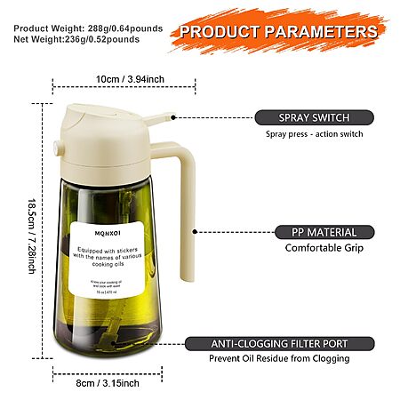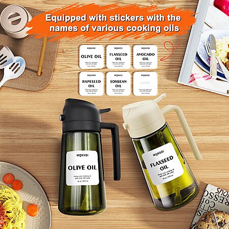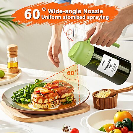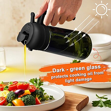 2 in 1 Glass Oil Sprayer & Dispenser, 16oz/470ml (White + Dark Green Bottle1) - $5.99