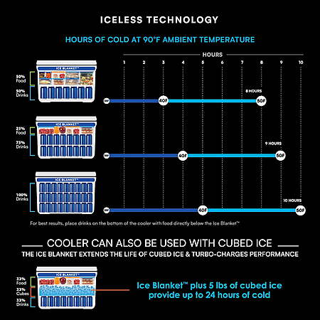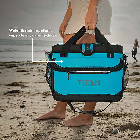 | Product Description: | Meet the all new Titan by Arctic Zone 38 Can Iceless Zipperless Cooler with 25 quart volume capacity. No more hauling ice or dealing with soggy messes. This cooler is equipped with an XL Ice Blanket that blankets the entire interior to keep everything cold for the long haul. NO CUBED ICE NEEDED! Titan Zipperless Coolers feature our convenient, easy access lid as well as superior cooling from Deep Freeze Performance Insulation with a radiant heat barrier and ColdBlock base. What makes the Iceless Zipperless Cooler extraordinary is that it includes an extra large, 2.2 lb. Ice Blanket. The Ice Blanket is filled with Deep Freeze Performance Gel that lasts longer than ice, delivering up to 8 hours of cold in 90°F heat – no cubed ice needed. You just freeze the Ice Blanket, place it on top of the food and drinks, close the lid and you're off. The Ice Blanket not only cools but acts like a shield by blocking warm air at the top of the cooler from warming the contents. It includes two grab handles so you can easily lift one side of the foldable Ice Blanket to get into the cooler. The Ice Blanket also makes a great shelf. The interior of the cooler includes a removable, leak proof HardBody liner with SmartShelf that is designed to keep food and drinks or hard and soft foods separated so soft foods don't get crushed. It's also great for keeping your contents organized. The Ultra Safe interior lining of the cooler is leak proof and has Microban built into it to help protect against bacterial odors and stains and make the interior easy to wipe clean. The insulated, leak proof compartment at the front of the cooler can hold up to 8 cans and is great for snacks and items you need to access quickly. The cooler features a patented, removable, adjustable Backsaver strap with anti-slip shoulder pad that centers load weight for more even distribution. And a first for Titan Zipperless, this cooler has tote handles for quick grab and go. For added convenience, the cooler includes side mesh pockets, a bungee system on the lid of the cooler for extra storage and a detachable bottle opener. The exterior of the cooler is tough, water and stain repellent, and wipes clean easily which is great for fast clean-ups. Included with your cooler are two Packing Guides: one for Iceless use and one for cubed ice. Each provides helpful tips to ensure you pack and use your cooler effectively. Enjoy the Iceless Advantage and make all your outdoor experiences better – whether you're hitting the trails, the tailgate, or heading to the job site, the Titan 38 Can Iceless Zipperless Cooler is built to go beyond. Titan by Arctic Zone 38 Can Soft Cooler - 8 hours of cold with no ice cubes needed 25 Quart volume capacity Includes 2.2. lb XL Ice Blanket Deep Freeze Performance Insulation with radiant heat barrier and ColdBlock base Removable HardBody liner with SmartShelf keeps hard and soft contents separate Ultra Safe leak proof, easy clean lining with Microban to help protect against bacterial odors and stains Expandable, insulated front compartment with leak proof lining Patented, removable, adjustable Backsaver shoulder strap with anti-slip shoulder pad helps center load weight for easier carrying Exterior mesh pockets for accessories Bungee system on lid for extra storage Tote handles for grab and go Detachable bottle opener Tough, water and stain repellent, wipe clean exterior |