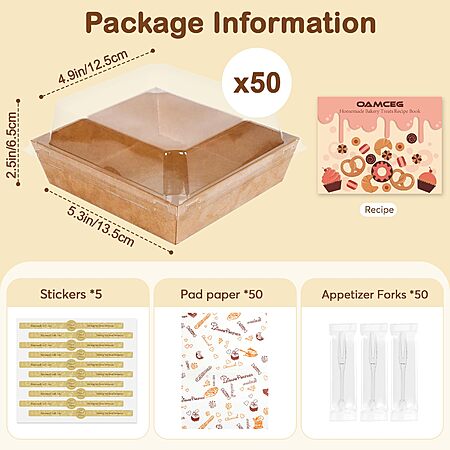 50-Piece OAMCEG Small Disposable Bakery Paper Boxes w/ Clear Lids $9.99 ($0.19 each) + Free Shipping w/ Prime or on $35+