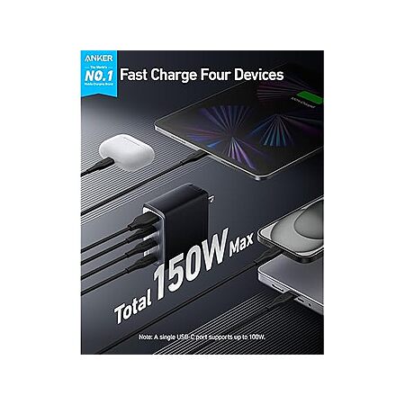 $49.99 | Anker 747 4-Port GaNPrime USB-C Foldable Wall Charger (Up to 150W Max; USB-C 100W) at Woot!