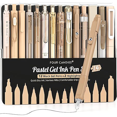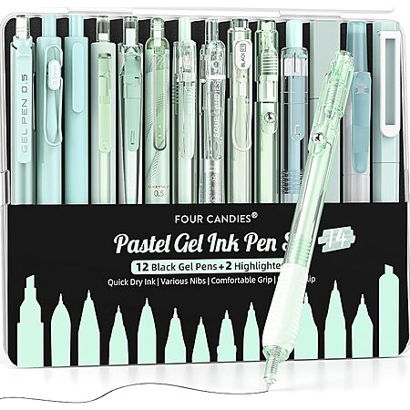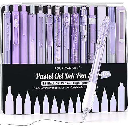 12-Count Four Candies 0.5mm Fine Point Retractable Pastel Gel Writing Ink Pens with w/ 2-Pack Highlighter (Various) on sale for $12.99 - 30% off when you enter the coupon code