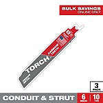 YMMV Milwaukee 3 Pack 6 in. 10TPI The TORCH with Carbide Teeth Metal Cutting SAWZALL Reciprocating Saw Blade (3-Pack) $13