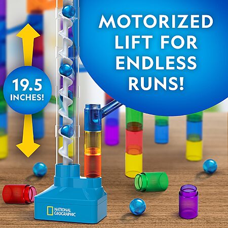 Amazon[amazon.com] has National Geographic Marble Run with Motorized Elevator - 150-Piece Marble Maze Kit with Motorized Spiral Lift, 30 Marbles, Storage Bag & More, Perpetual Motion Machine, Kids Physics Toys on sale for $37.49.