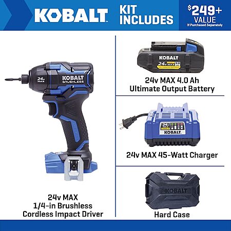 Kobalt XTR 24V 1/4" Brushless Cordless Impact Driver Kit (KXID 1424A-03) on sale for