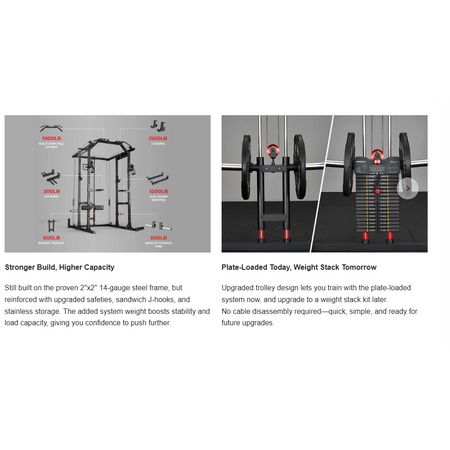 Apparently this model can be later upgraded with the select-weight-stack system by Mikolo... that is nice ( see the image attachment ). But still only a 2x2 inch frame, 14 gauge steel, yet suitable for about 95% of users.