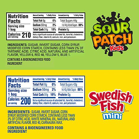 - SOUR PATCH KIDS and SWEDISH FISH Mini soft candy snack packs that make great party favors, stocking stuffers, and home movie theater candy