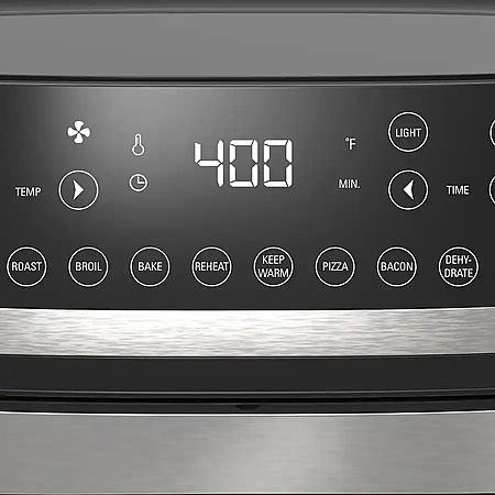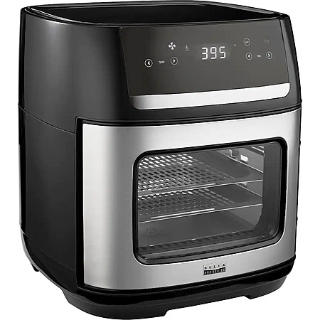 Experience versatile cooking with the bella PRO 12.6-qt. Touchscreen Air Fryer Pizza Oven with Rotisserie. Air Fry, Dehydrate, Rotisserie, Grill, Roast, Bake, Broil, and Reheat your favorite meals with consistent results every time. The extra-large capacity fits a 10" pizza, 2.2 lbs. of french fries, 4 slices of bread, and a 4 lb. chicken. The powerful 1500-watt heating system uses High Performance Circular Heat Technology to circulate heat for fast, crispy, and evenly cooked results every time. 10 convenient preset menu options, adjustable temperature range from 90°F to 400°F and 24-hour auto shut-off timer with audible tone. Made without PFAS, PFOA, PTFE, Lead, and Cadmium, the EverGood Ceramic Nonstick Coating gives you confidence & peace of mind when using this air fryer, while dishwasher-safe parts simplify the cleanup process and save you valuable time.