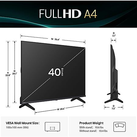 Hisense 40-Inch Class A4 Series FHD 1080p Smart Fire TV (40A4NF, 2025 Model) - DTS Virtual: X, Slim Bezel Design, $119.99 AMAZON