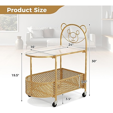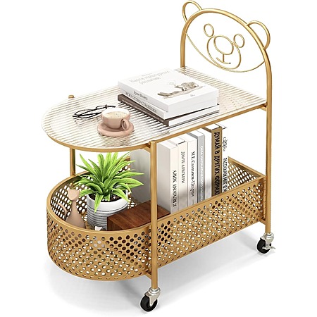 Giantex 2-Tier Bear Coffee Table Cart w/ Tempered Glass Tabletop & Storage Basket (Golden or White) $27 + Free Shipping