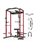 | Product Description: | Why you should get a power cage, not a simple power rack? In-cage workout is the answer. Compared to free weights, in-frame exercise provides better safety for beginners. Combines a power tower, workout cage, and cable station, allowing for unlimited exercises in a limited space. Constructed from high-quality 2”x 2”, 14-gauge steel for enhanced strength and stability. Increased capacity from 1000 lbs to 1200 lbs, accommodating 6-8 adults for a superior fitness experience. All-in-One Power Cage: Combines power tower, workout cage, and cable station, allowing for unlimited exercises in a limited space. (TIPS: WEIGHT PLATES ARE NOT INCLUDED) Upgraded Structure: Constructed from high-quality 2”x 2”, 14-gauge steel for enhanced strength and stability. Increased capacity from 1000 lbs to 1200 lbs, accommodating 6-8 adults for a superior fitness experience. Stable Reinforcement: Enhanced base design improves stability while protecting floors from scratches and wobbling during workouts. Upgraded Pulley System: Features rolling bearings for smoother operation and increased durability of the pull-down system. Storage Space: Includes 2 weight holders on each side and 4 storage hooks for gym equipment, such as lat pull-down bars and tricep ropes, optimizing your workout area. Free Accessories Included: Comes with essential attachments including safety bars, J Hooks, dip bars, cable bar, T Bar, lat pull-down bar, triceps rope, and extra barbell storage racks. Assemble Dimensions: 63.8''(L) x 51.2''(W) x 80.7''(H); Gross weight: 176 lbs. Mikolo Got Your Back: The product comes with lifetime warranty on the main steel frames and any accessories. You may easy to assemble with the manual, installation video, and all necessary hardware included. Also, the training video is available online, feel free to check it out. This item has a total of 2 packages and may not arrive at the same time. Please contact us anytime for support! |