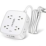 6 Ft Surge Protector Power Strip - 8 Widely Outlets with 4 (2 A and 2 C) USB Ports, 3 Side Outlet Extender with 6 Feet Extension Cord, , ETL $8.99 AMZ
